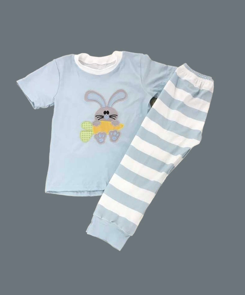 Boys Easter print stripy pyjamas. Milk silk material. 95% spandex 5% cotton