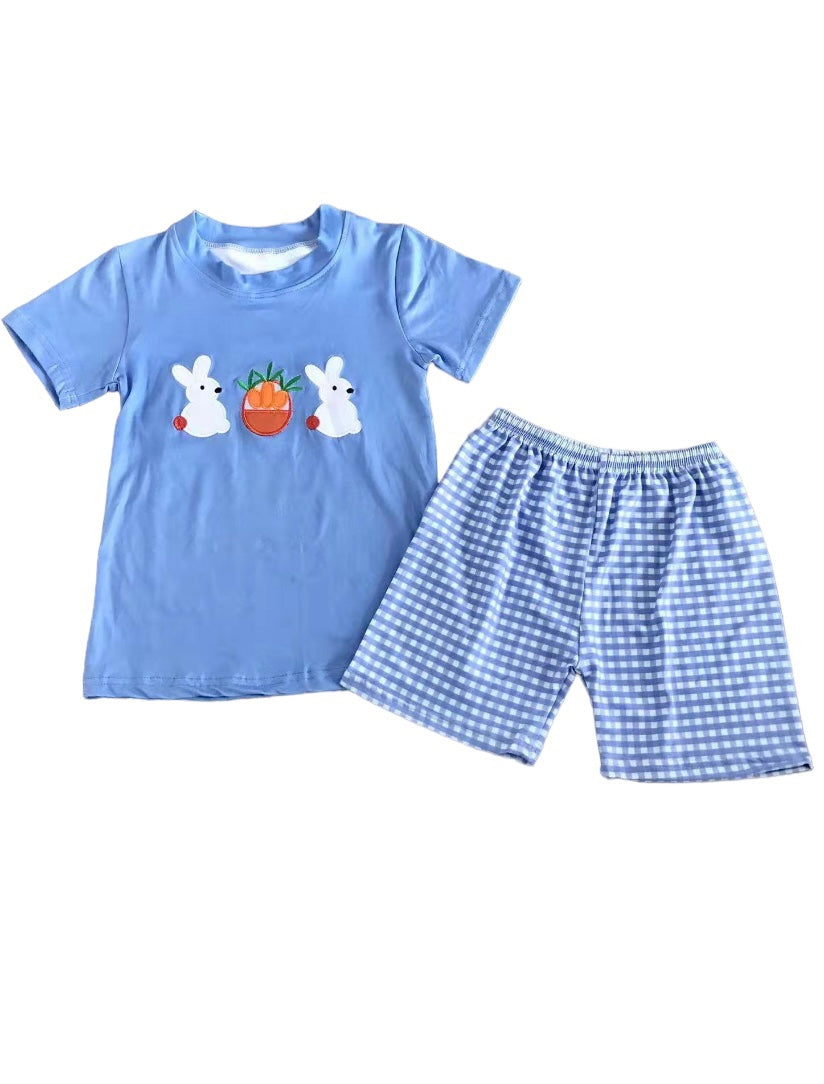 Boys Easter print T-shirt and shorts set. Milk silk material. 95% spandex 5% cotton
