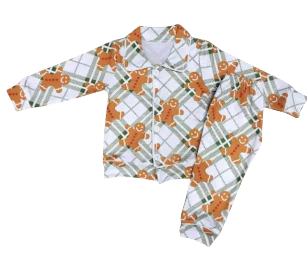 Boys Gingerbread pyjamas. 95% cotton 5% spandex