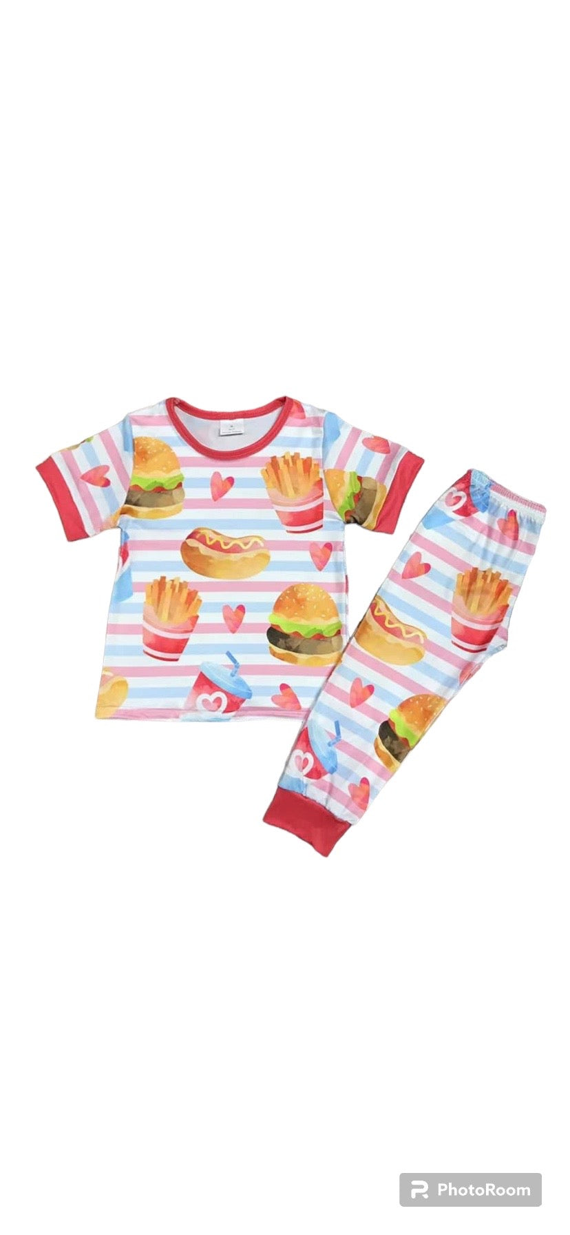 Fast food print pyjamas for boys and girls. Milk silk material. 95% spandex 5% cotton