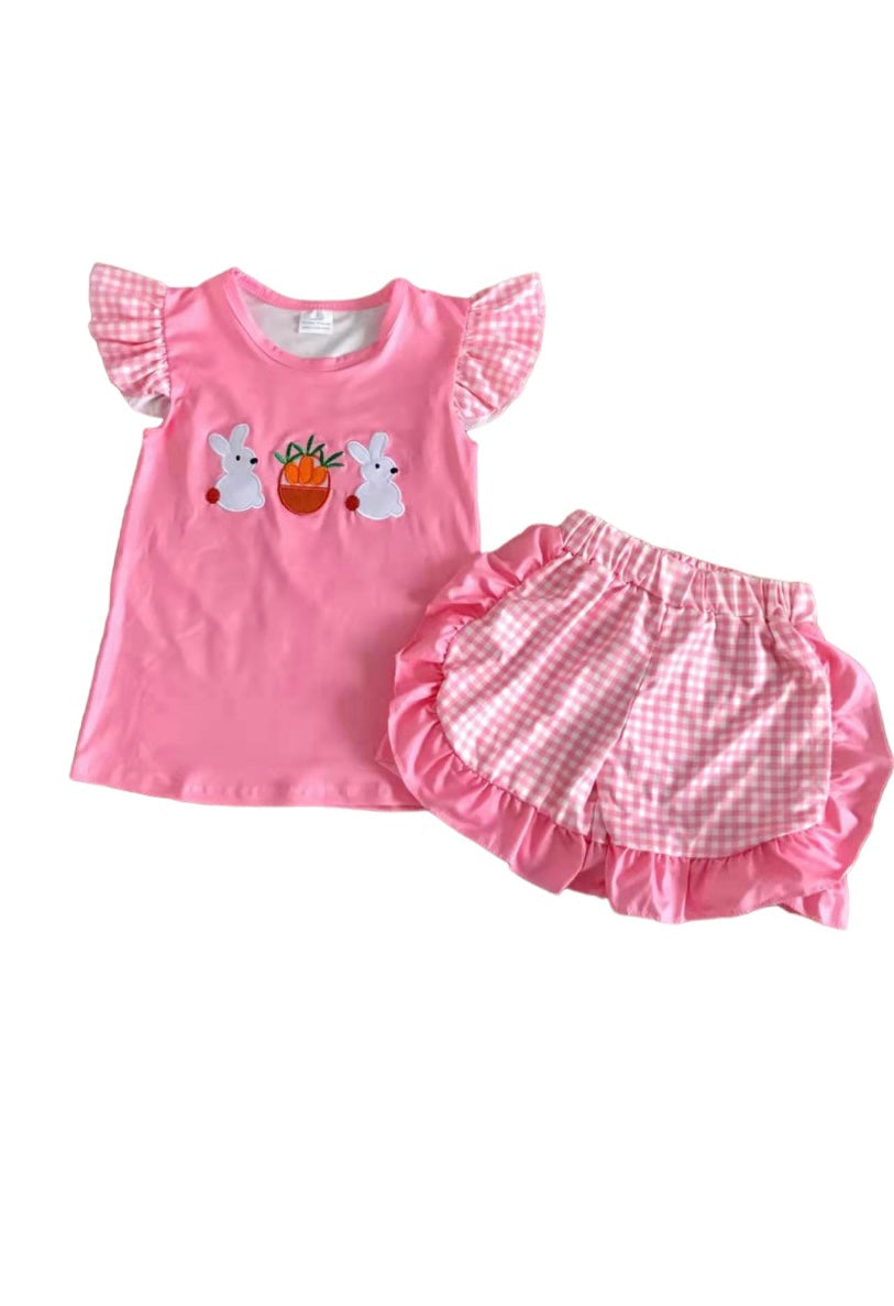 Girls Easter print T-shirt and shorts set. Milk silk material. 95% spandex 5% cotton