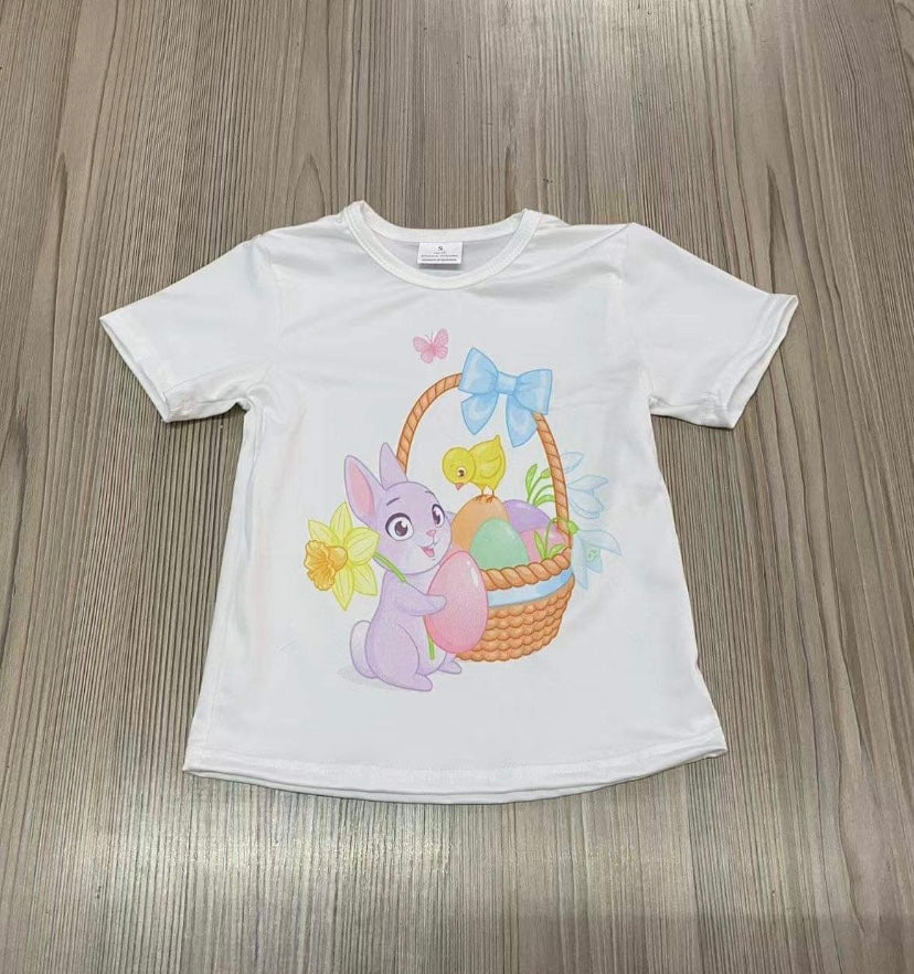 White Easter children’s T-shirt. Milk silk material. 95% cotton 5% spandex