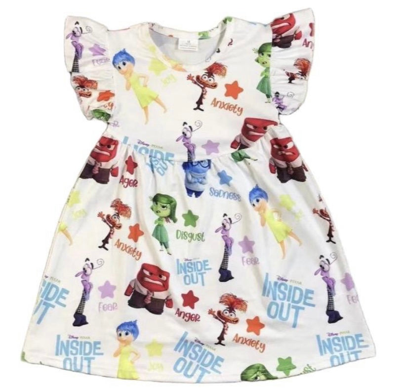 White Inside Out theme print dress . 95% cotton 5% spandex